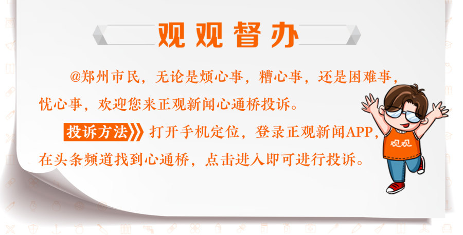 正观新闻联合“心通桥”开设的“观观督办”栏目上线了!“观观督办”专为郑州市民的“烦心事”而来,对于市民反映的问题、意见等,观观督办团一帮到底!