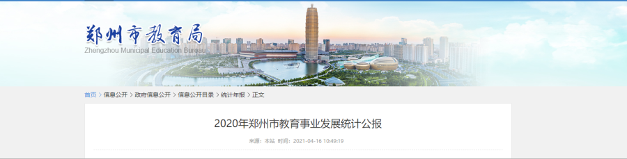 4月16日,记者从郑州市教育网站获悉2020年郑州市教育事业发展统计公报出炉。