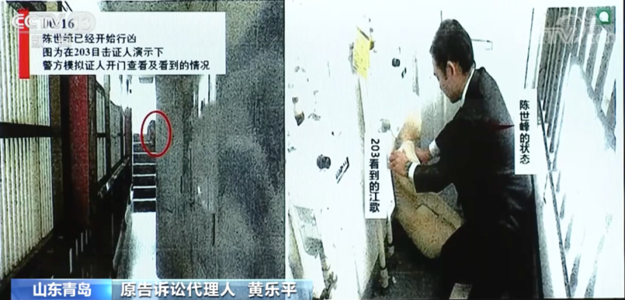 原告诉讼代理人称,电话显示刘鑫报警时间为2016年11月3日0时16分左右,在她第一次报警期间,江歌发出了巨大的惨叫声,公寓203住户的目击证人听到惨叫声后开门查看,发现江歌已经倒在地上,陈世峰看见有人发现后仓皇逃离现场。刘鑫透过门的猫眼看到了陈世峰,也看到了江歌倒在地上。