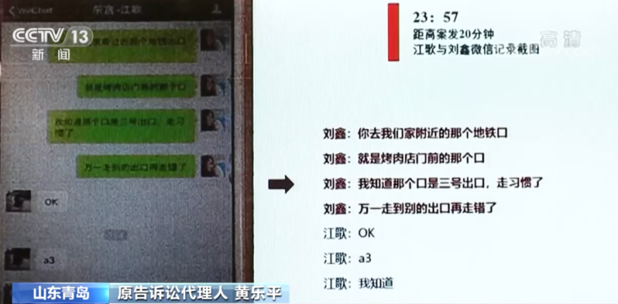 原告方诉讼代理人称,2016年11月2日23时31分,陈世峰通过微信向刘鑫发送了带有威胁的语言。刘鑫连发5条微信给江歌,叮嘱其在三号地铁出口等待她回家。