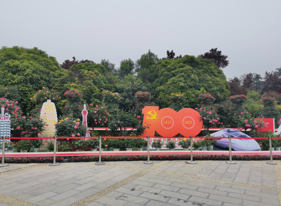 为营造花展氛围,月季公园以月季为主要花材,在东广场匠心打造“美丽家园”主题立体花坛和“展百年画卷 赏岁月芳华”主题景观小品。植物园采用镶嵌、分层、点缀、组合等多种造景手法,在园区重要节点打造“盛世月季图”“月季闹春”主题花坛,利用月季热烈多变的色彩和造型,营造出“江山万里春常在,翠染乾坤无限情”的盛世画面。