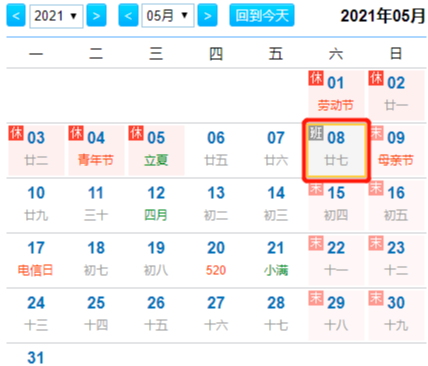 5月1日至5日放假
