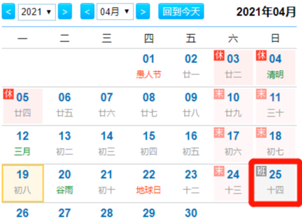 4月25日(周日)和5月8日(周六)