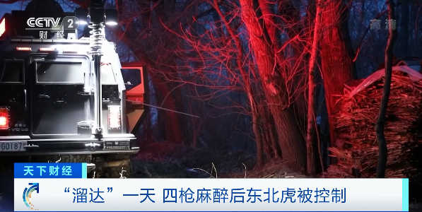 在这起东北虎进村伤人事件中,起初,老虎只是趴在一处空房子旁边,后来不仅将车窗玻璃拍碎,还在田地里扑伤了一名村民。此后,老虎躲在了村落旁边的沟渠里。经过一整天的严防布控,黑龙江省林业厅救助队先后给老虎打了四枪麻醉针,在23日21点左右,将老虎控制。