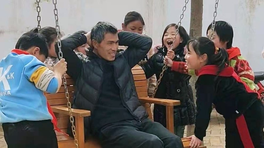 而在孩子们面前,他更不像个校长。歌曲张口就来,跑调的旋律、夸张的表情,惹得旁边的学生哈哈大笑,他将之称为“治愈系画面”。抢孩子们手中的零食再还回去,用手捂着在孩子们耳边说悄悄话,他称自己“年近不惑,恁不成熟”,但乐在其中。