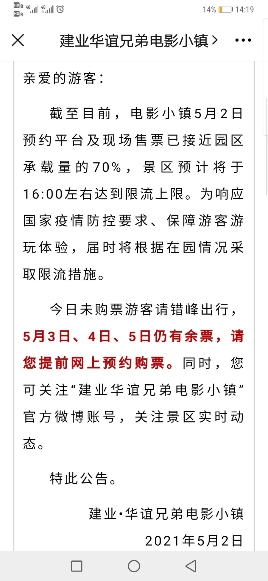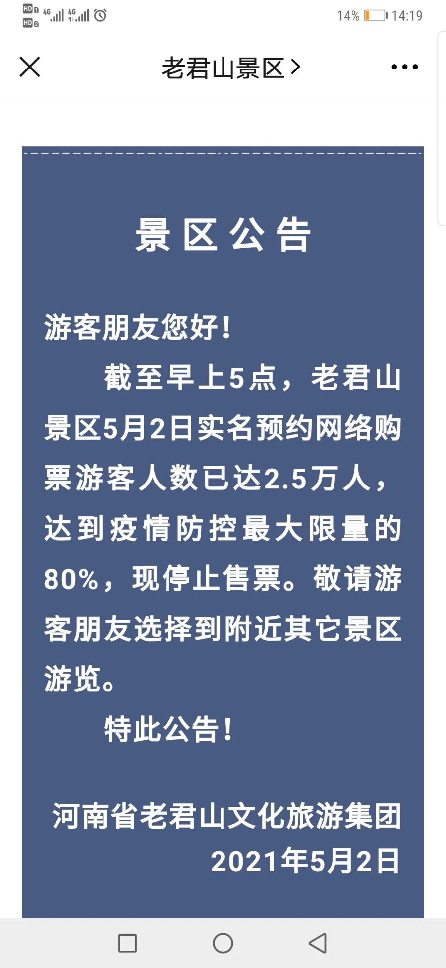 老君山、清明上河园等多景区发出限流公告,请游客错峰出游、提前预约购票