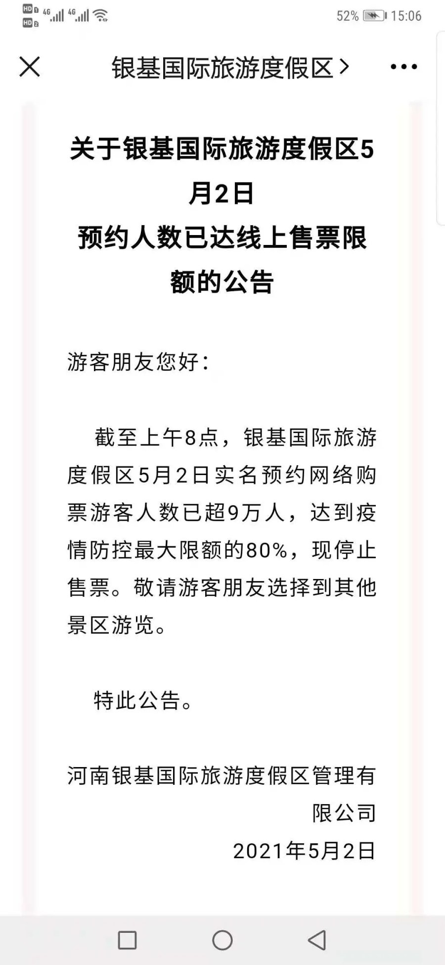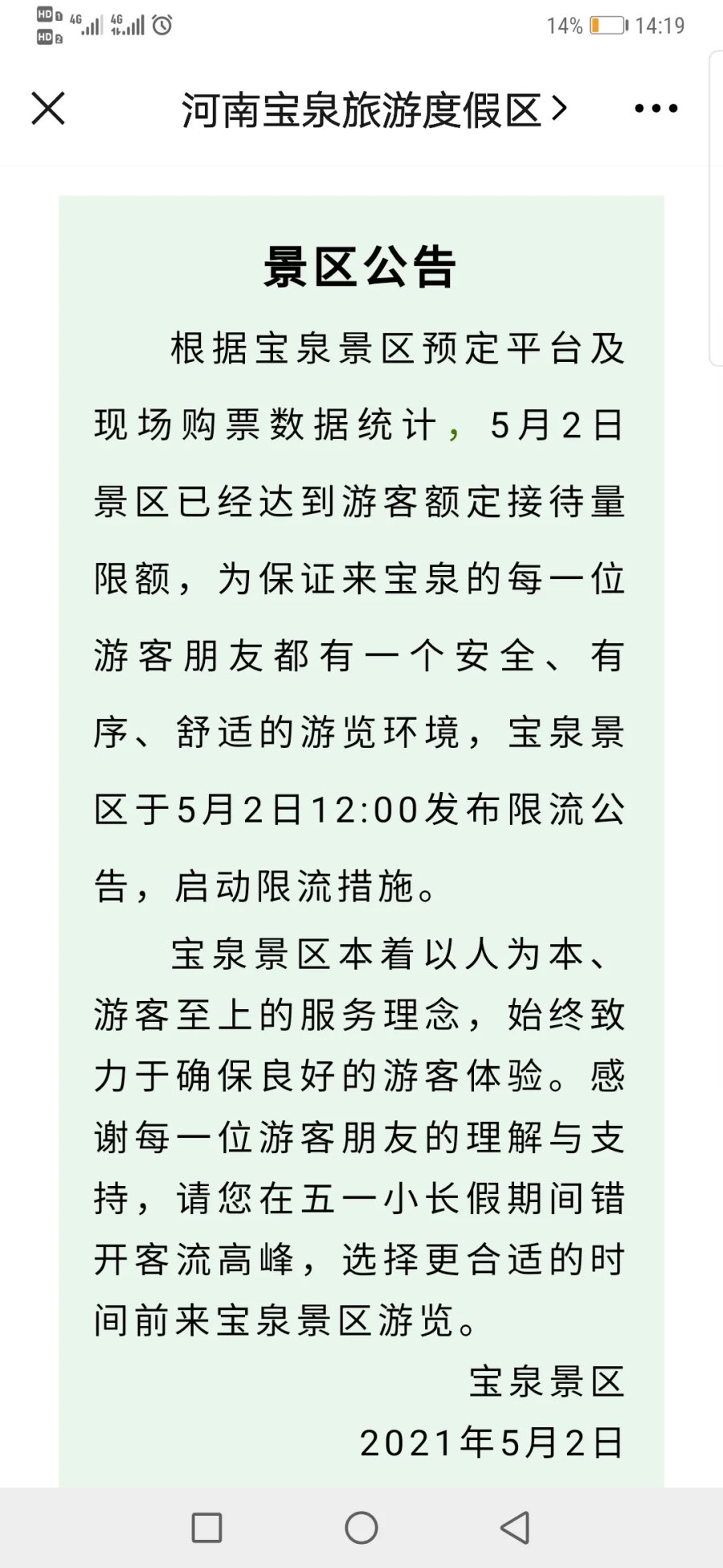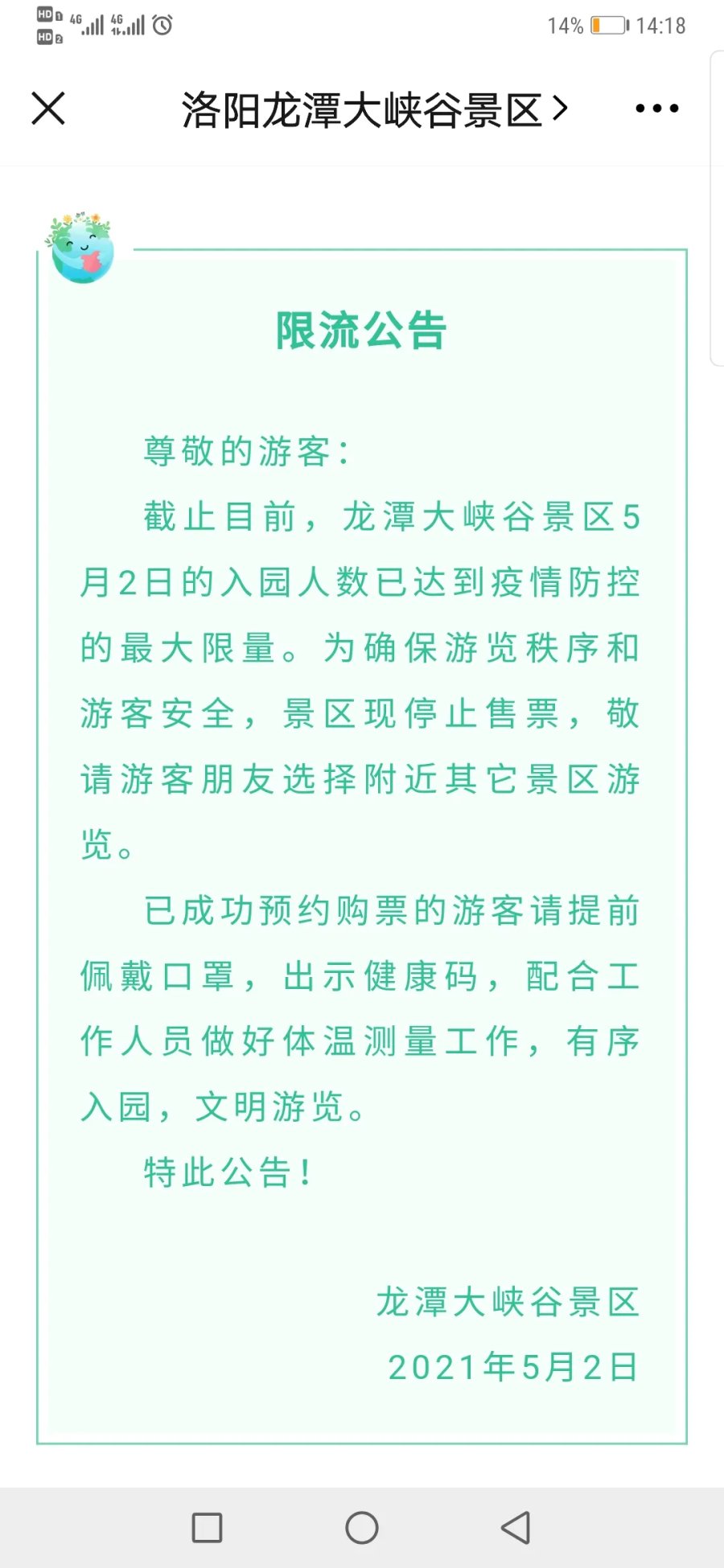 河南多家景区发布限流公告 出门前一定要预约