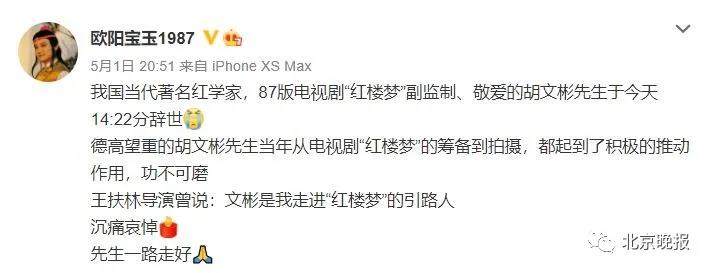 著名红学家、87版《红楼梦》副监制胡文彬逝世,“宝玉”发文悼念