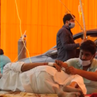 圣家庭医院重症监护室主任 苏米特·雷:目前我们收治的病人已经超出了你所看到的重症监护病房的能力。我们把病人放在床上,把担架放在床之间,我们的呼吸机已经耗尽了,我们正在使用麻醉机给病人呼吸。我们现在有了年轻的病人,我们对病人进行了试验。尽管如此,我们的呼吸机已经耗尽了,病房里的病人都是重症。理想情况下应该在重症监护病房,但我们没有空间给他们。