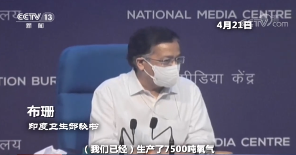 印度卫生部秘书 布珊:(我们已经)生产了7500吨氧气,其中我们已经分配了6600吨氧气用于医疗目的,在未来几天,我们将增加氧气的分配。正如我们所说,我们还要求各邦适当地计划氧气的使用,并走向合理地使用氧气,这就是我们应该一起努力做的事情。