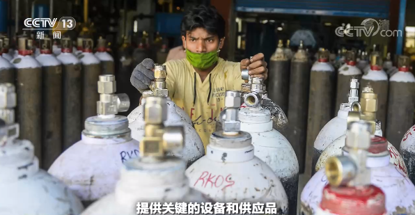 “据中国海关总署统计,自今年4月以来,中国向印度提供了超过5000台呼吸机、21569台制氧机、超过2148万个口罩,以及大约3800吨药品。”