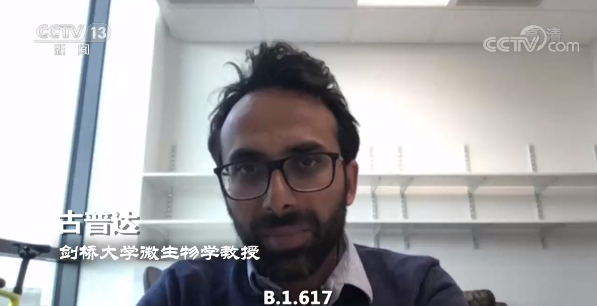 剑桥大学微生物学教授 古普达:在印度发现的变体B.1.617,这种病毒还没有得到研究,也不是很清楚。但它确实有一些我们知道的突变,例如受体结合结构域的L452突变,属于蛋白质的一部分。刺突蛋白的传染性或感染性至少增加五倍。
