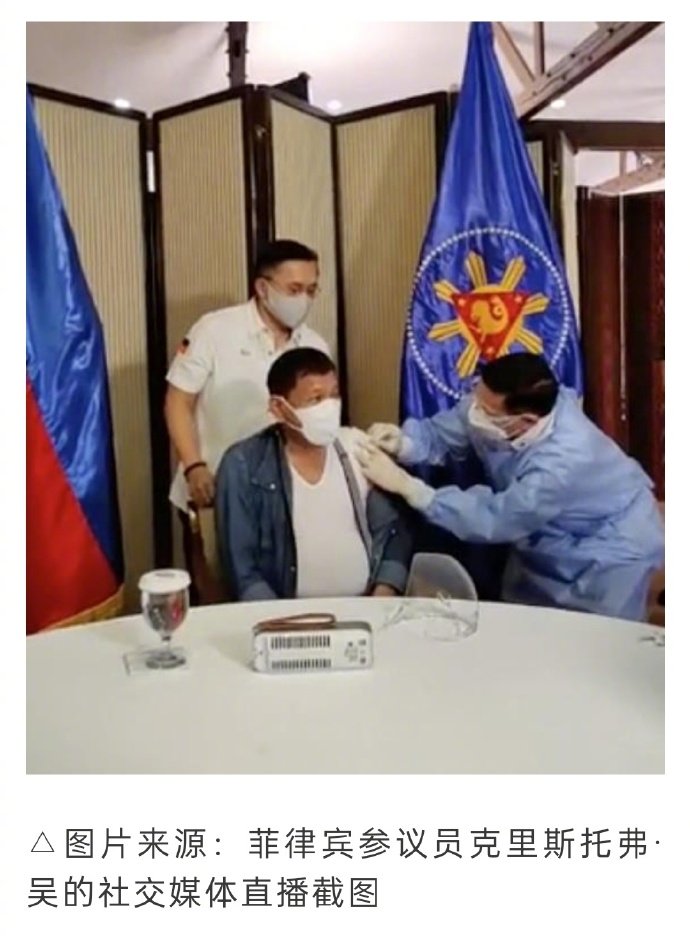 菲律宾总统杜特尔特接种中国新冠疫苗