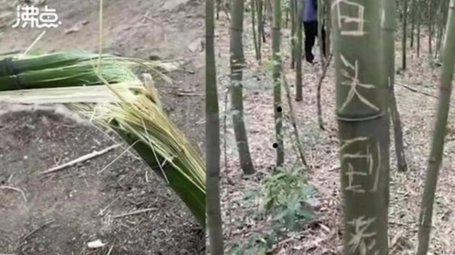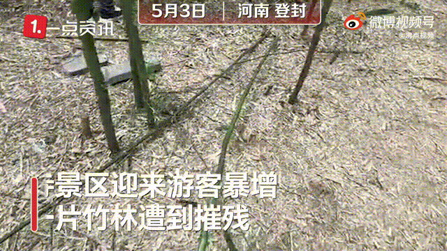 少林寺内竹林被上百游客刻字,数十人争相攀爬扭断幼竹