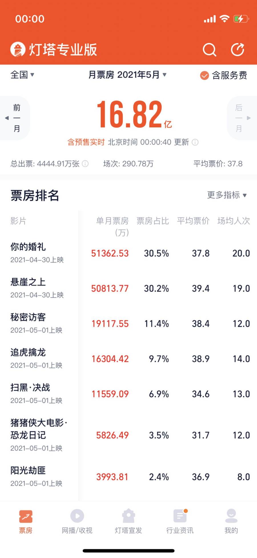 牛年加长版五一档落下帷幕,据灯塔专业版数据显示,截至5月5日24时,2021年五一档(5月1日至5月5日)票房超16.82亿,近4445万人次观影,你贡献了多少?
