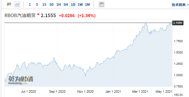 美国汽油期货价格创三年新高
