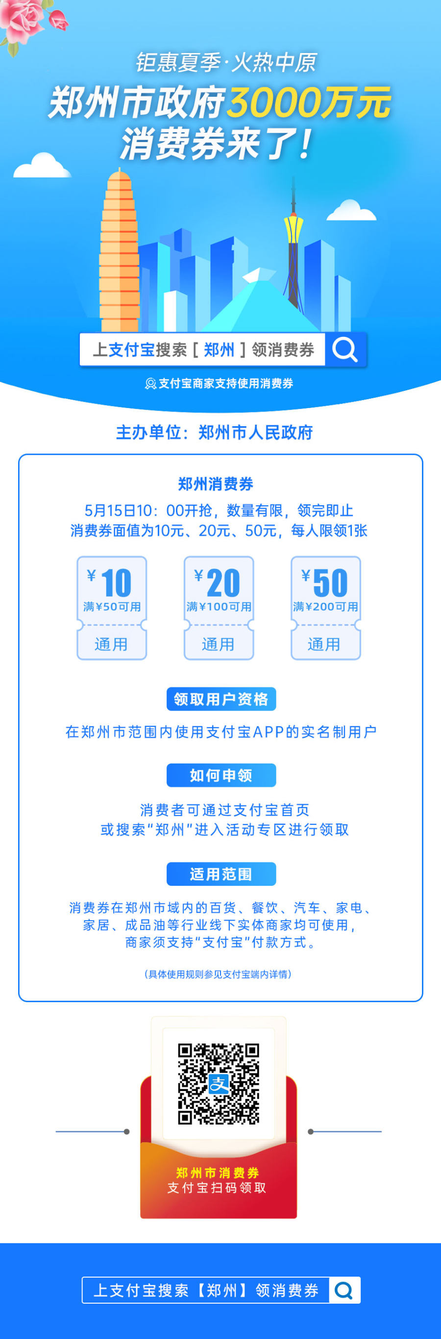 郑州消费券来了!5月15日,全城发券3000万元