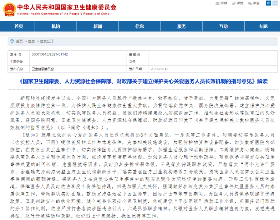 国家卫生健康委员会、人力资源社会保障部、财政部近日印发《关于建立保护关心爱护医务人员长效机制的指导意见》。根据意见,医务人员参与处置突发公共卫生事件,要及时发放临时性工作补助,医疗卫生机构可根据医务人员参与突发公共卫生事件处置的时间长短、危重程度等因素,及时为其安排带薪休假。尽量不安排双职工的医务人员同时到一线,不安排孕期或哺乳期医务人员到一线,开通家属就医绿色通道。