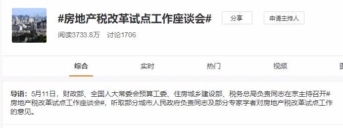 消息发出后,“房地产税改革试点工作座谈会”迅速冲上了微博热搜。