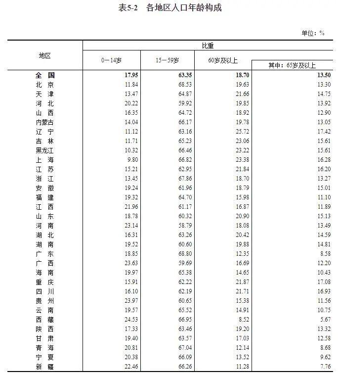 从年龄构成来看,哪个省份最“年轻”?哪个省份最“老”?
