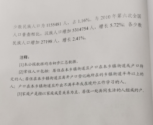 (八)民族人口。全省常住人口中,56个民族齐全。其中,汉族人口为9821.0万人,占98.84%;各少数民族人口为115.5万人,占1.16%。与2010年相比,汉族人口增长5.72%,各少数民族人口增长2.41%。