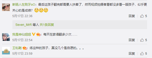 最后这孩子翻完都需要人扶着了,然而视频拍摄者看都没多看一眼孩子,似乎更关心的是成绩?
