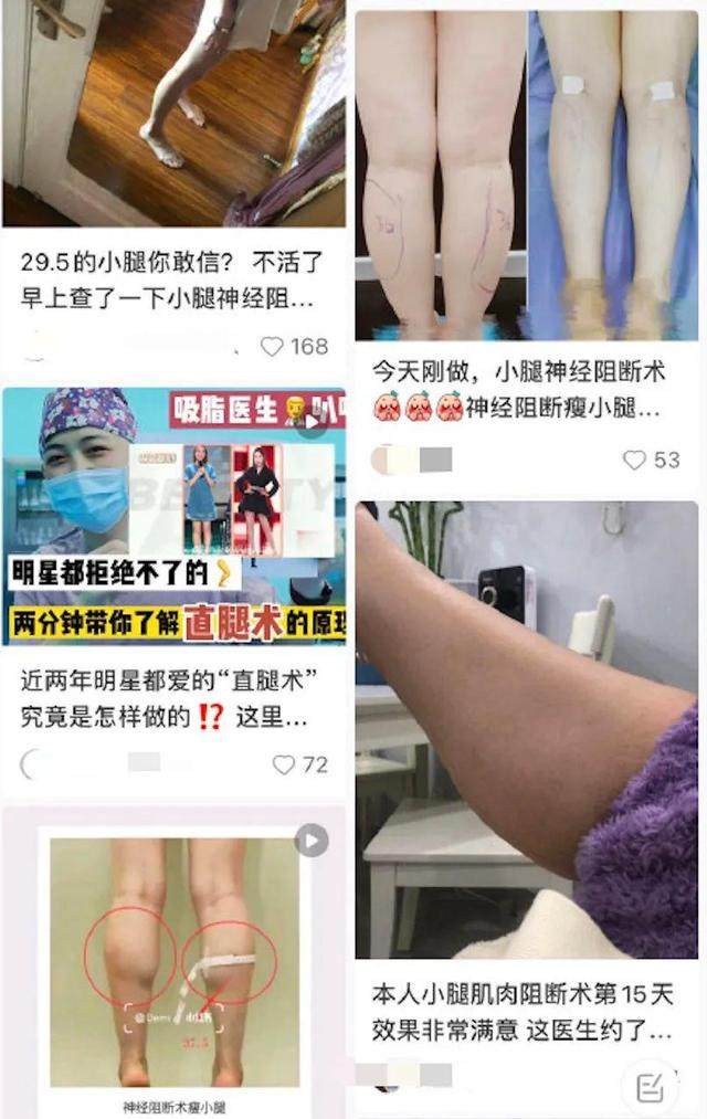 从专家透露的信息分析,遵守职业道德的医生和医院都不会开展这种手术,同时也说明目前国家缺乏明确的规定,禁止开展这项整形手术。于是就有机构钻了漏洞,将此包装成一种新技术到整形市场上来忽悠。在某社交平台上,“小腿肌肉阻断术”得到上万人点赞“种草”。不少博主亲身体验并表示,做了之后轻轻松松就能瘦下来。目前,各方批评之下,社交平台已对此进行了标注:如有需求请前往正规医院就诊。
