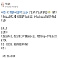 惊悉袁隆平院士逝世后,钟南山院士送上简洁而深情的缅怀之辞: