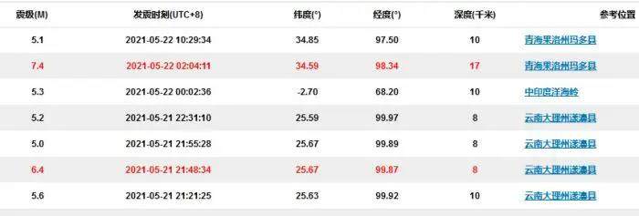 21日晚至22日上午,云南漾濞县和青海玛多县接连发生地震,其中玛多县地震震级达到7.4级,成为汶川地震之后,中国境内发生的最大震级地震。