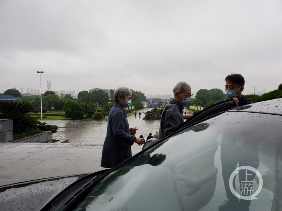 5月22日下午6时许,袁隆平的太太邓女士离开明阳山殡仪馆。