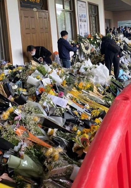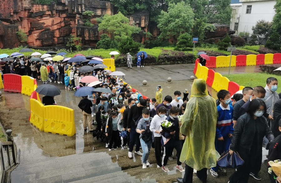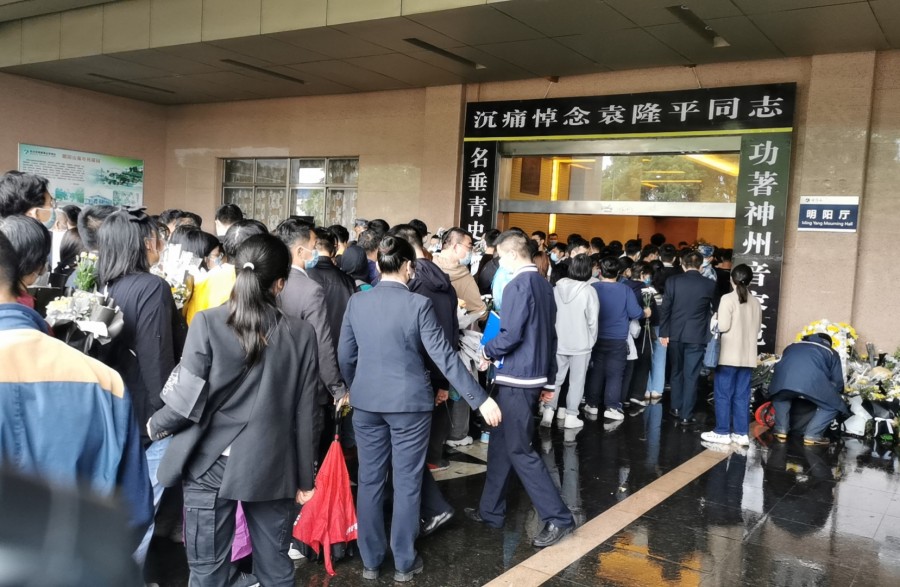 5月23日,长沙明阳山殡仪馆前,上万市民冒雨送别袁老,鲜花和留言卡摆满了楼前空地,传达出对袁隆平院士的无尽哀思。