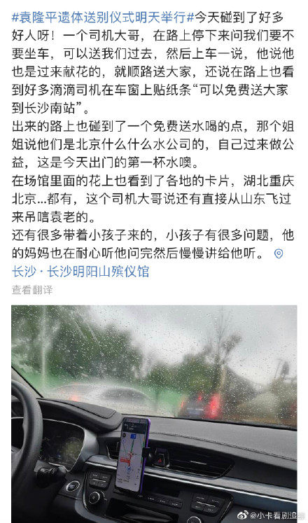 5月23日,很多长沙出租车司机为前往明阳山殡仪馆送别袁隆平院士的市民提供免费乘车服务。司机朱师傅告诉记者,今天有人发起免费接送服务后,大家踊跃报名。中午12时左右,前往明阳山殡仪馆的道路已十分拥堵。 殡仪馆附近道路已实行交通管制。