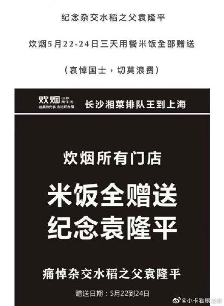 袁隆平同志遗体送别仪式将于明日上午10:00在长沙市明阳山殡仪馆铭德厅举行。