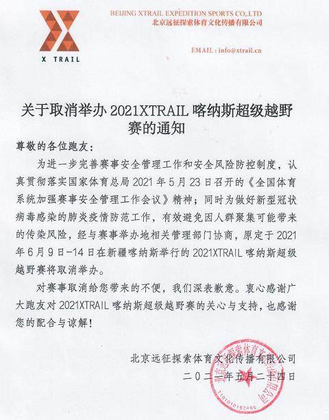 原定于6月9日举行的2021XTRAIL喀纳斯超级越野赛取消。