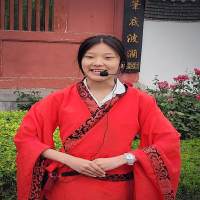 5月23日,在郑州巩义杜甫故里,一小学生用一口流利的英语为游客介绍杜甫故里。