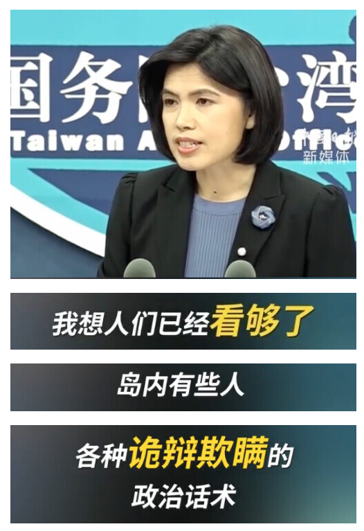 “过去一年多,我想人们已经看够了岛内有些人各种诡辩欺瞒的政治话术。