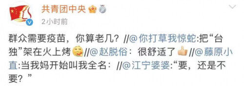 对广大台湾同胞希望尽快使用大陆疫苗的愿望,是顺应还是无视。”