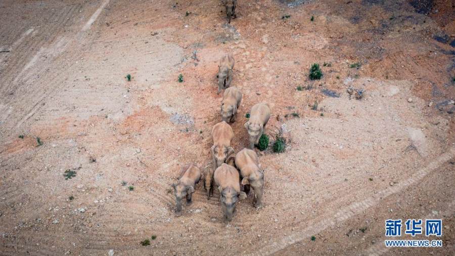 5月28日在云南省玉溪市峨山县境内拍摄的象群(无人机照片)。新华社记者 胡超 摄