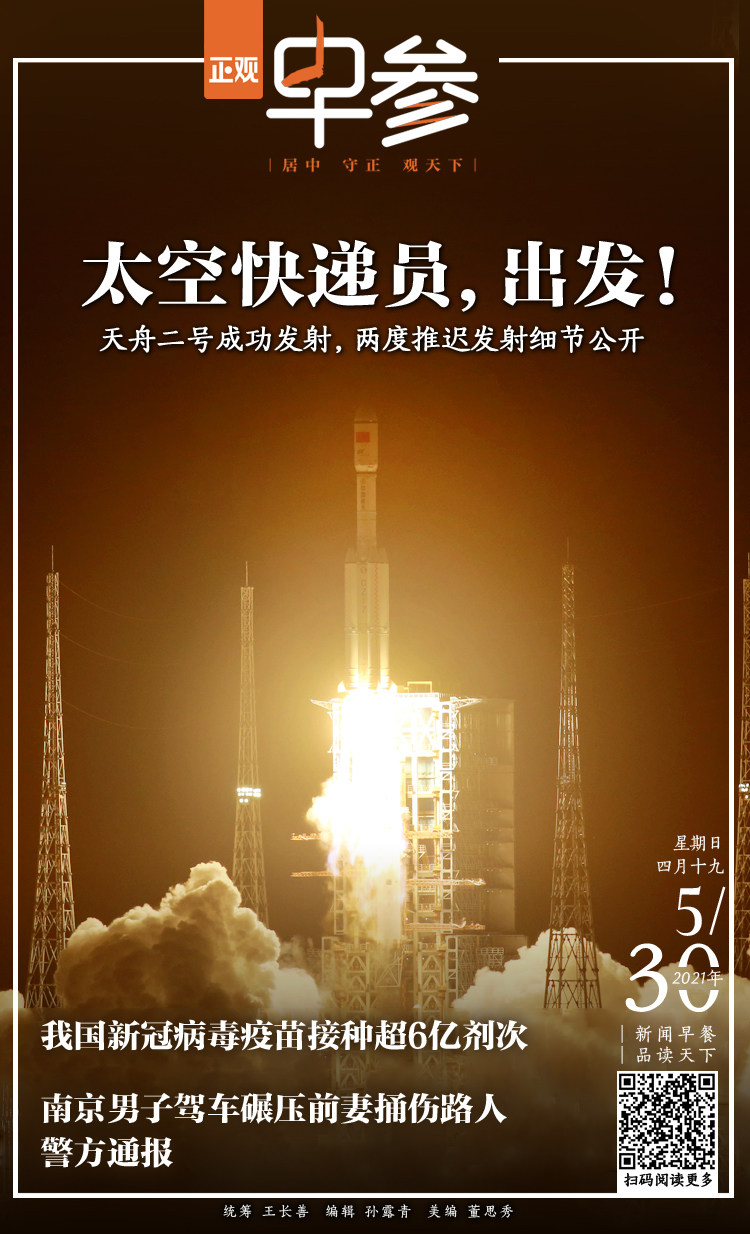 北京时间5月29日20时55分,中国在文昌航天发射场用长征七号遥三火箭成功发射天舟二号货运飞船。中国空间站天和核心舱迎来第一位“访客”。