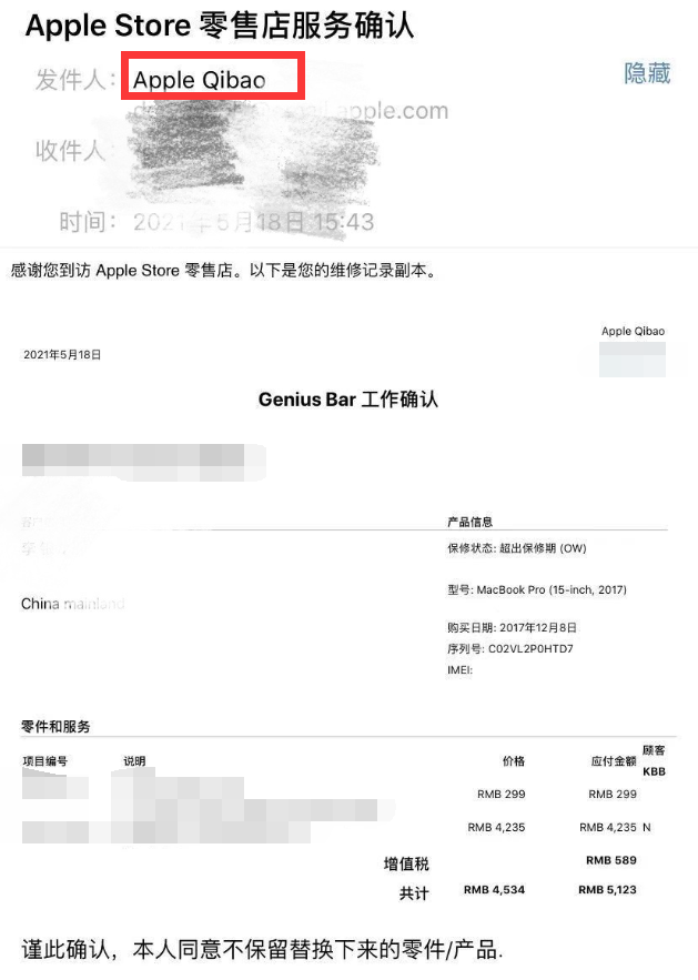 此条款乍一看没问题,类似于“以旧换新补差价”,的确能让消费者受益。但问题是,苹果售后果真为李先生提供了较低的服务价格吗?5123元更换一块新主板,再支付5000多元才能拿回旧主板,意味着新主板原价10000多元。价格如此之高,恐怕不合理。要知道,电脑原价也才16000多元。是苹果售后定价过高,还是原本就未向李先生提供所谓较低的服务价格?