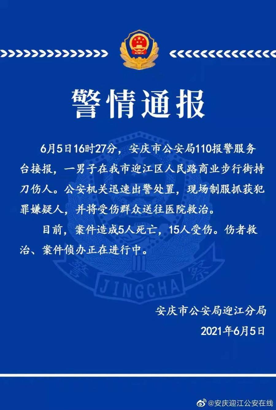 5死15伤!安庆发生持刀伤人案,警方通报!