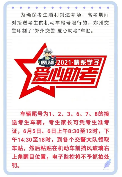为助考,郑州限行车辆凭送考车贴不予处罚