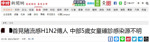 (原题为《台媒:台湾首见一例人感染H1N2猪流感病毒,5岁女童确诊,感染源不明》)