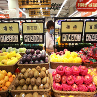 从环比看,CPI下降0.2%,降幅比上月收窄0.1个百分点。其中,食品价格下降1.7%,降幅收窄0.7个百分点,影响CPI下降约0.31个百分点。食品中,生猪生产不断恢复,猪肉供给持续增加,价格继续下降11.0%;鲜菜和鲜果供应充足,价格分别下降5.6%和2.7%;受供给减少、需求增加及饲料成本上涨等因素影响,淡水鱼价格继续上涨9.9%;受蛋鸡存栏量下降、饲料成本上涨及气温升高产蛋率下降等因素影响,鸡蛋价格上涨3.3%。非食品价格上涨0.2%,涨幅与上月相同,影响CPI上涨约0.16个百分点。非食品中,因国际原油价格上涨,国内汽油和柴油价格分别上涨1.7%和1.9%;受原材料价格上涨影响,电冰箱、电视机、台式计算机和住房装潢材料等工业消费品价格均有上涨,涨幅在0.3%—1.2%之间;夏装新品上市,服装价格上涨0.3%。