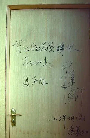 吃完这一餐,准备离开航天员公寓前,航天员还会在自己的宿舍门上写下名字和出征时间,留作纪念,将这一刻永远定格在了历史的记忆中。