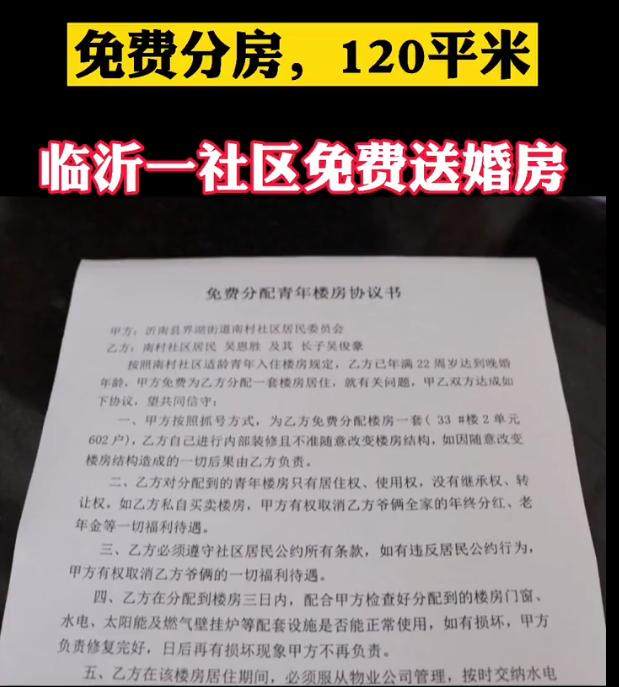 山东一社区为适婚青年分婚房,引发关注。120平米的房子,价值80多万元,免费分给本社区适婚青年。许多网友直呼“羡慕”,问能不能全国推广?自己社区什么时候也能分房?
