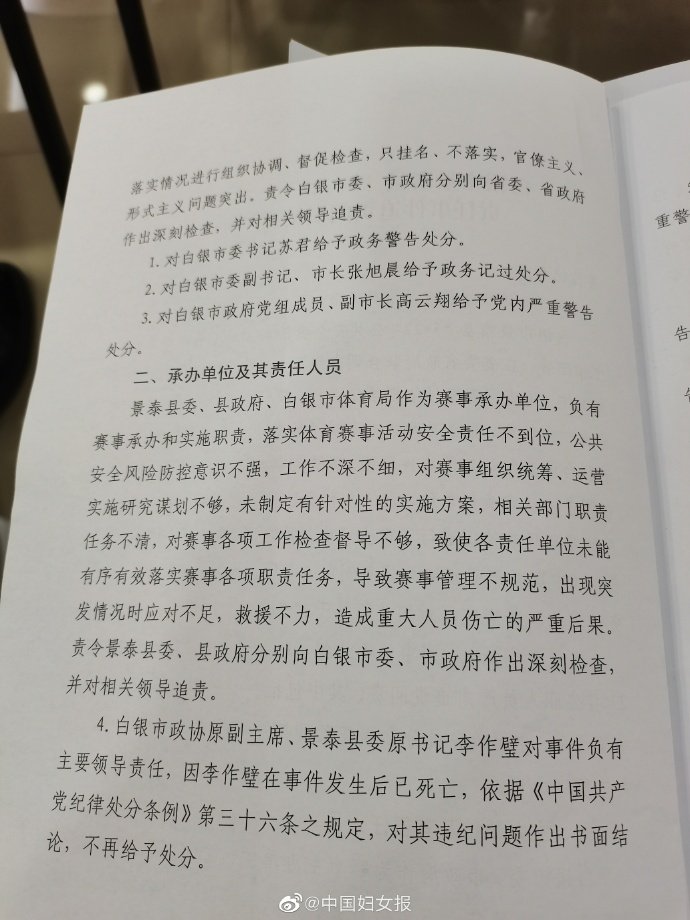 甘肃通报21死马拉松事故:27人被追责,1名官员死亡免处分