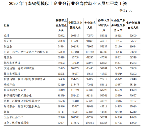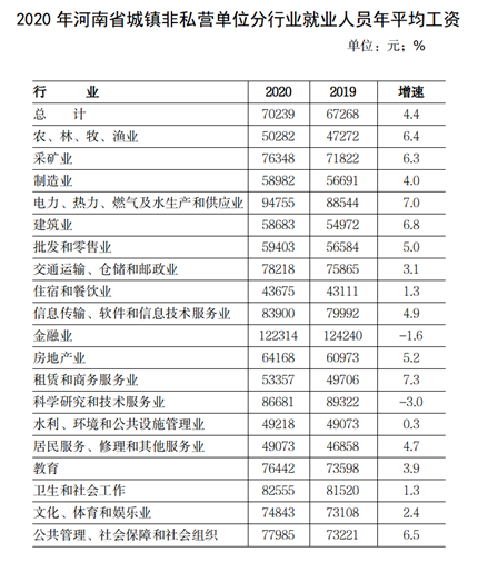 记者6月11日从河南省统计局获悉,2020年全省城镇单位就业人员平均工资出炉,全省城镇非私营单位就业人员年平均工资70239元,全省城镇私营单位就业人员年平均工资46733元,多个指标均出现增长。
