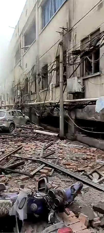 记者7点40在现场看到,救援人员正在抢救伤员,把伤者抬到救护车上,附近干群也主动投入到救援工作中,在废墟瓦砾中搜寻受伤人员。