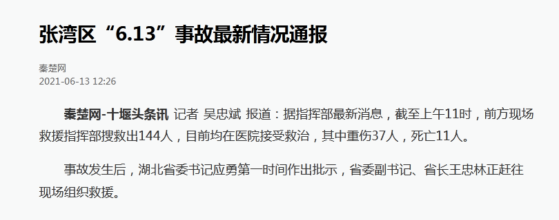 湖北十堰爆炸致11死37重伤,省长正赶往现场